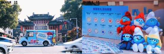 蓝精灵IP的加入,则让江南秋冬更添童趣。抖音生活服务打造蓝精灵主题“美美巴士”,在南京、苏州、无锡三城核心商圈与景区巡游,用户打卡合影、带话题发视频即可领取限定周边与商家优惠券。与此同时,“城市隐藏蓝精灵”打卡活动同步上线,联动40多个商家铺设主题物料,用户跟着巡游地图打卡就能兑换礼品,有效拉动线下交易,12月10日-19日,参与商家扫码核销GMV环比日均增长19.5%。