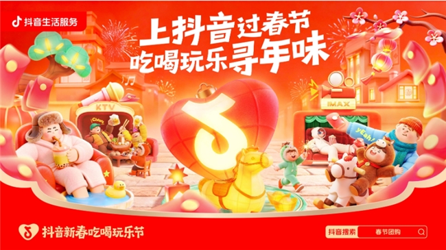 2月10日至23日,抖音新春吃喝玩乐节好礼不停,亿元红包雨、集卡赢豪礼、花样挑战赛等精彩活动轮番登场,陪你热热闹闹过新年。活动期间每天12:00、17:00、20:00整点,打开抖音进入“团购”频道首页或搜索“春节团购”,即有机会触发红包弹窗,现金红包与优惠券惊喜掉落。现在就呼朋引伴一起参与,共度这个精彩纷呈的新春佳节吧!