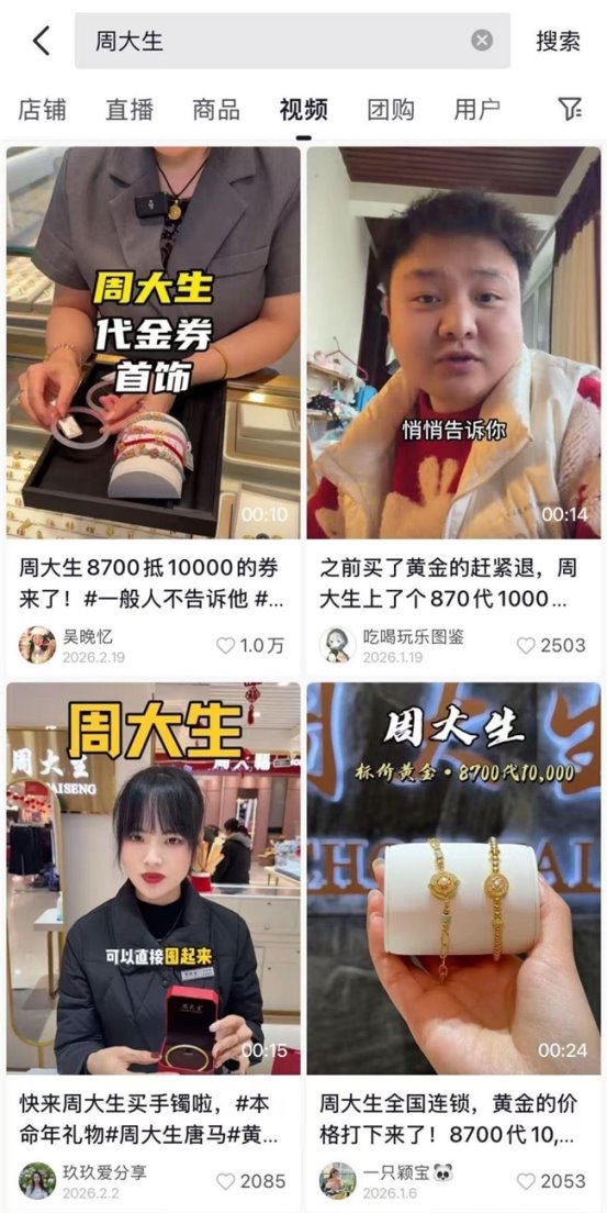 系统化的专业服务,也撬动了品牌的规模化增长。数据显示,2025年1—9月,职人短视频成交超过7200万元,职人直播GMV突破4亿元;同期,周大生在抖音生活服务平台的全品类销售额也超过了10亿元。